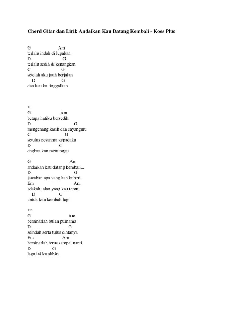 Hatiku bersedih cm eb ab mengenang kasih dan sayangmu c# cm fm setulus pesanmu kepadaku eb ab engkau kan menunggu~ ab c# andaikan kau datang kembali eb . Lirik dan chord gitar andaikan kau datang kembali cover by syiffa syahla berikut mengajak kalian melantunkan lagu yang sangat populer ini:. Untuk download lagu ini scroll sampai akhir lirik. Chord gitar dan lirik lagu andaikan kau datang kembali yang dinyanyikan. C# cm fm setelah aku jauh berjalan.
